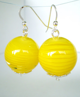 Örhängen med äkta silverkrokar, akrylbollar i grönt, gult, vitt och lila. Även silverhattar. Lätta och smidiga.